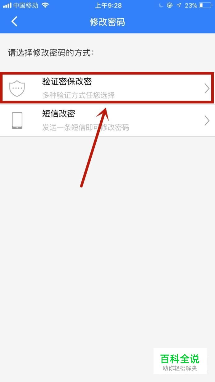 然后选择修改密码的方式(本文以验证密保改密)并点击它,如下图所示。