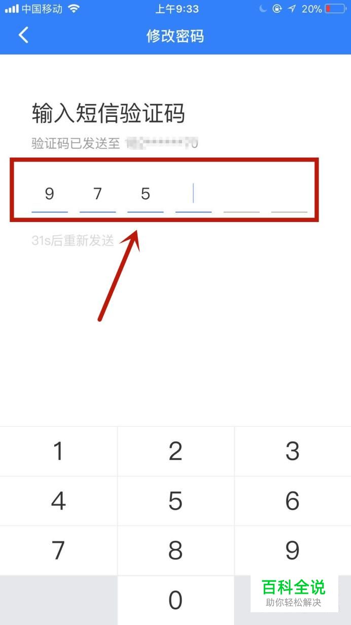 然后键入收到的验证码,如下图所示。