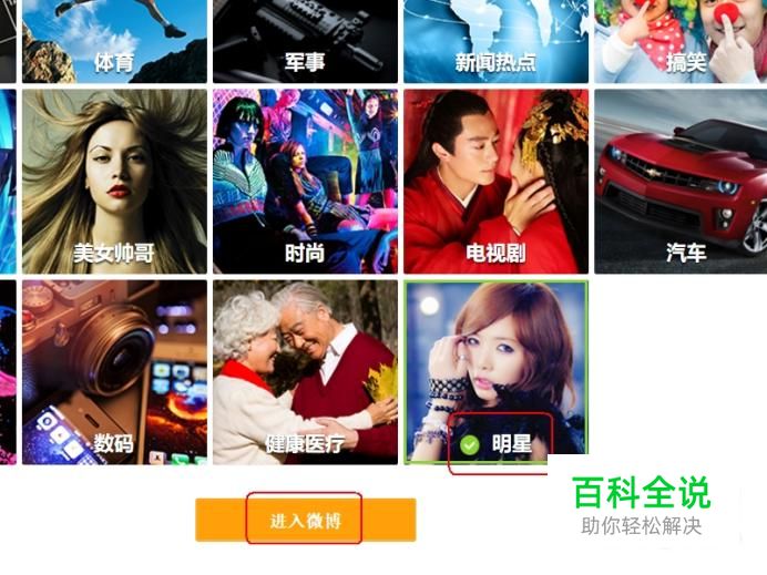 登录之后,系统会推送一些我们可能会感兴趣的分类,我们选择自己感兴趣的分类然后点进入微博。