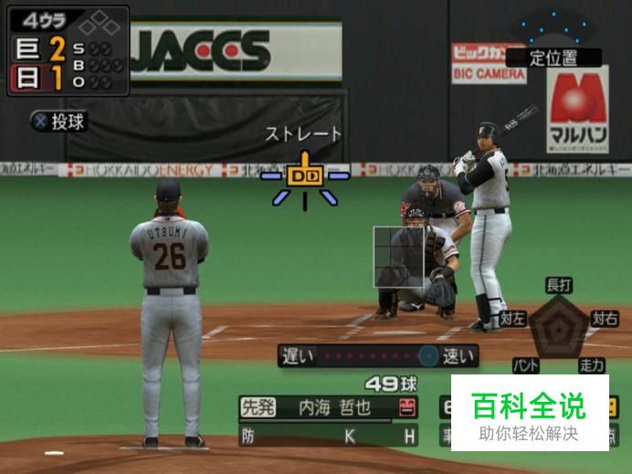然后我们就可以正式开始投球练习了。玩家需要看准好球带,然后按下O键,开始投球。如图所示: