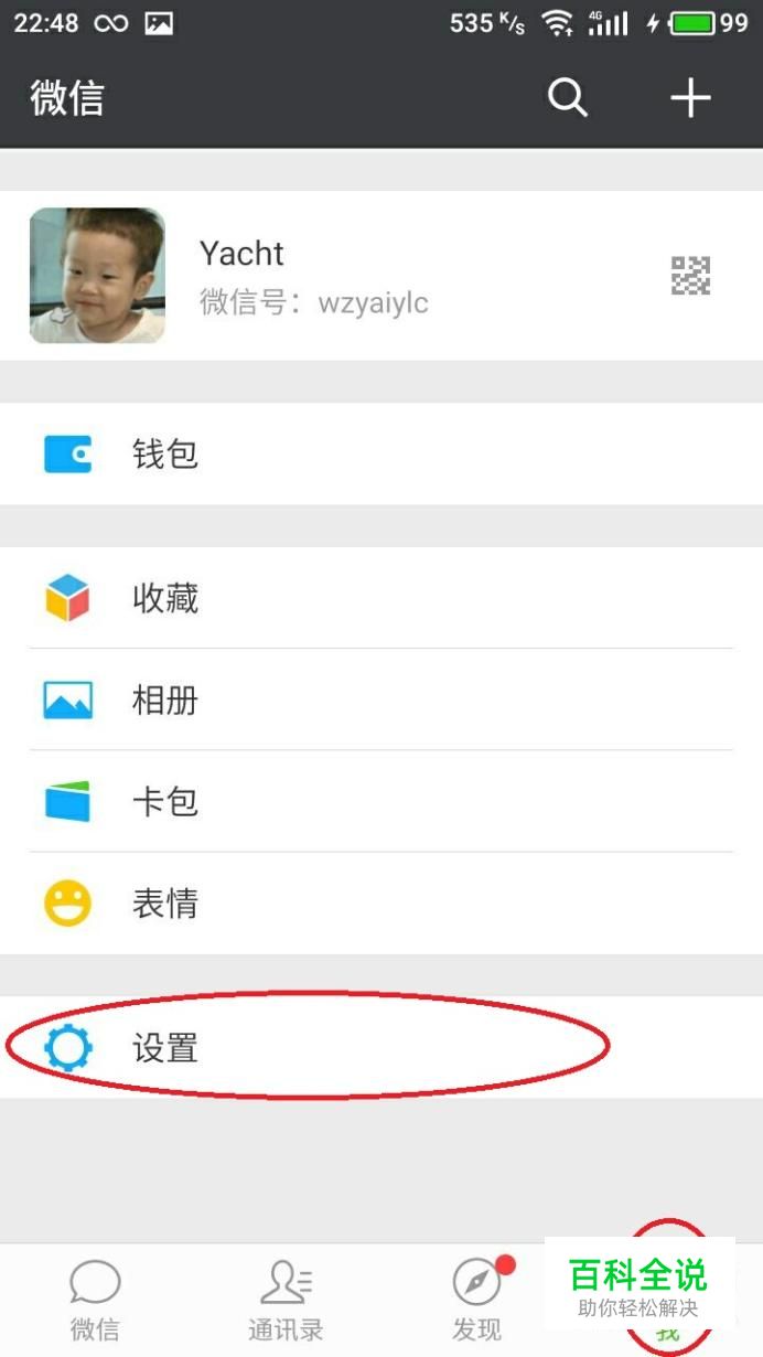 进入微信主页后,我们界面右下角找到“我”并点击进入,界面如下图所示,点击界面中的“设置”选项。