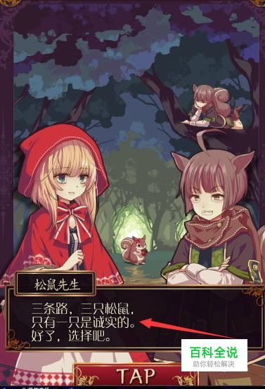 进入第三章后我们点击松鼠先生,知道只有一条通道是正确的,需要我们判断哪个小松鼠说的是真话,其余的则是假话;