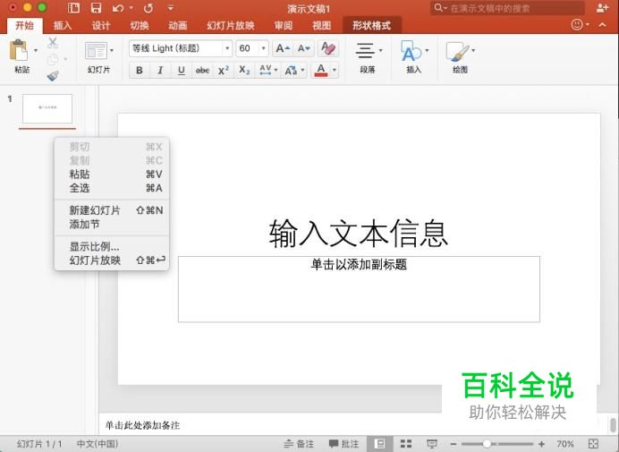 如果想要新建幻灯片的话,右键点击左侧列表,然后选择“新建幻灯片”即可进行创建。