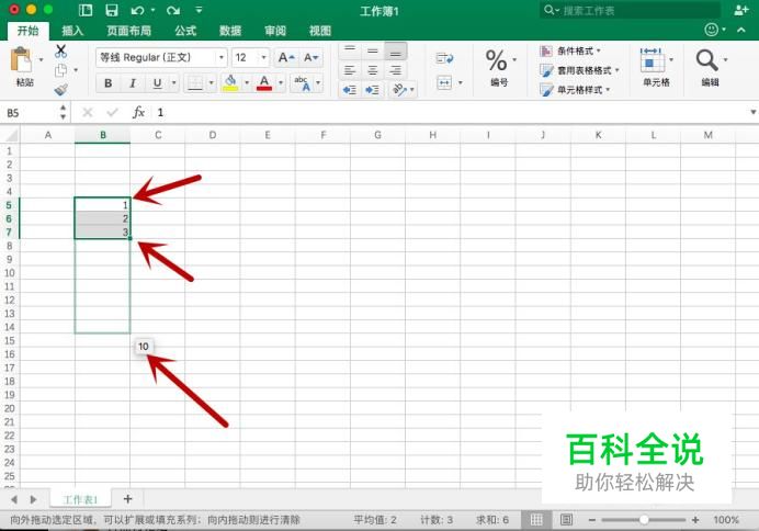 比如我们输入1、2、3,然后向下拖拽箭头,系统会自动判断叠加生成。