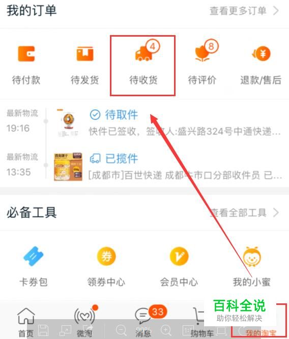 定时送货 打开淘宝App,进入主页点击右下角“我的淘宝”,再点击“待收货”。