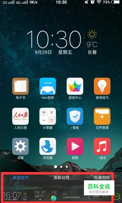 隐藏图标。在手机自带的应用里,有很多应用并不是我们经常使用的,有些应用一个月用不到一两次,所以这些图标放在桌面上不免有些多余,这时,我们就需要把图标隐藏,让我们的桌面显得简洁、干净!(点击vivox6左下角的按键→隐藏图标→将自己想隐藏的应用往下拉)