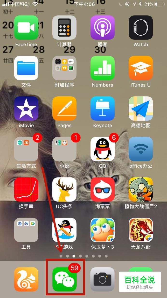 首先在手机桌面上找到“微信”图标并点击它,如图所示。