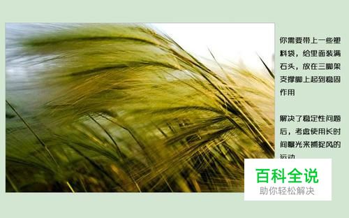 大风:考虑使用长时间曝光捕捉风的运动 大风天气对于拍摄风景来说往往很不利,你需要带上一些塑料袋,给里面装满石头,放在三脚架支撑脚上起到稳固作用。解决了稳定性问题后,考虑使用长时间曝光来捕捉风的运动。同样,偏振镜或ND镜会是你的好帮手。