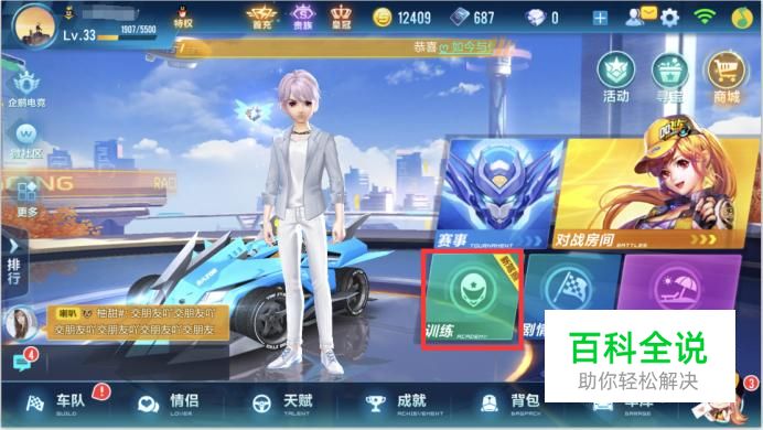 在游戏中,系统为我们提供了学习方法,登录游戏,来到大厅,点击训练按钮,如图所示。