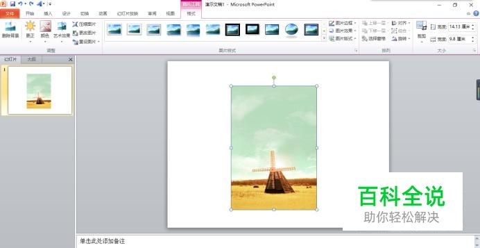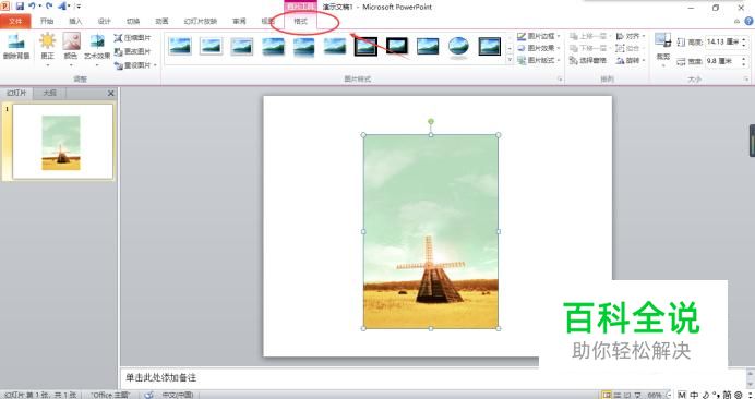 打开需要操作的PPT,选中插入的图片,在图片工具下找到“格式”。