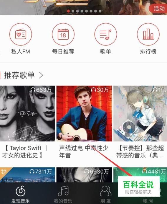 听歌识曲 进入网易云音乐主页面,点击左上角麦克风,将您要识别的音乐对准你手机的麦克风,系统将对您要寻找的音乐进行自动识别。