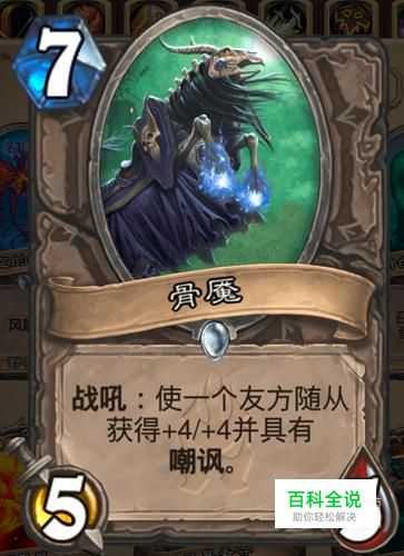 TOP1:骨魇 这是一张从开始到现在一直都被人看好的一张卡牌,可以说这一张十分超模的卡牌。战吼对一个随从+4/+4并且使其具有嘲讽。可以夸张点说这是一张“橙卡”。