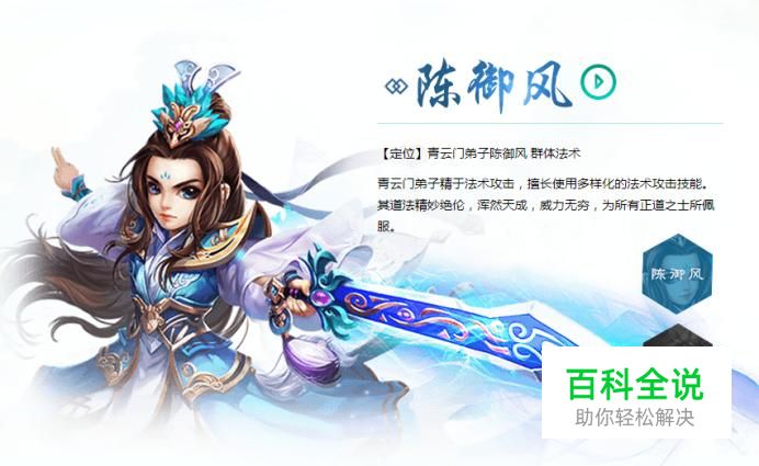青云门:陈御风 青云门男性弟子,这个角色是法系伤害的,而且是群攻伤害,所以喜欢法系和群伤的可以考虑这个弟子,外表也比较清秀。