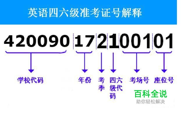 以其中一个朋友的准考证号来进行说明。如下图可见,其中前六位为学校地区代码,后面两位是年份,接着一位代表上下半年考试,之后的一位代表四/六级,然后后三位代表考场号,最后的两位是你的座位号。这样基本就可以拼凑出你的准考证号啦!