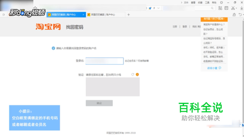 在“登录名”内输入淘宝所绑定的“手机号码”,“邮箱”,“会员名”,验证后点击“确定”。