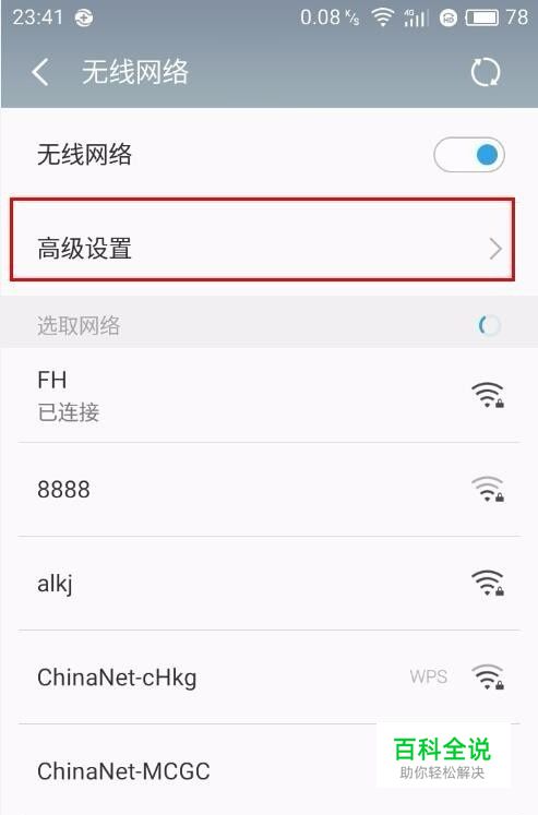 打开手机的“设置”---“无线网络”---找到“高级设置”,点击进去。