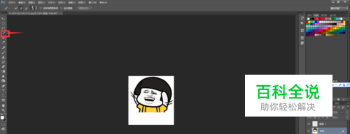 在电脑打开Photoshop软件(即ps),将需要改的图拉进ps软件内,点左上角的快速选择工具(如图)。