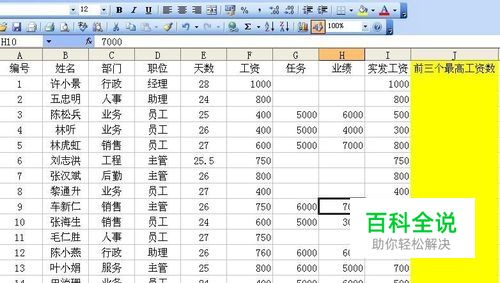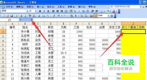 第一,如图一个工资表数据,在最右侧要求出“前三个最高的工资数”。