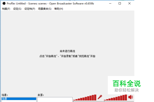 第一步:百度搜索“OBS”下载安装,这里不用多说,安装完成后我们打开OBS