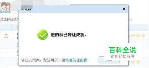 接下来,你会收到确认的通知,点击确定,该群转让成功;