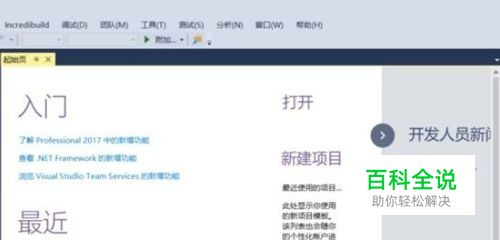 首先不用我多说,肯定是先打开电脑,运行VS2017软件,进入起始界面,如下图所示。