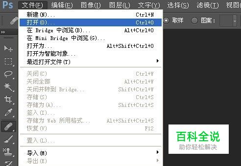 首先打开PS软件,然后打开文件,可以输入ctrl+o打开文件对话框,选择文件,或者点击文件按钮,然后打开文件,都可以,将文件导入到ps中