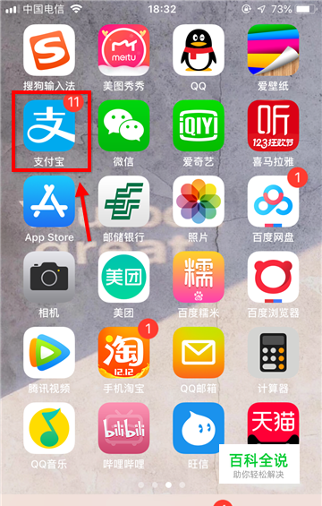 手机安装支付宝APP,然后点击支付宝图标,启动软件。