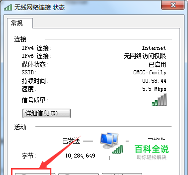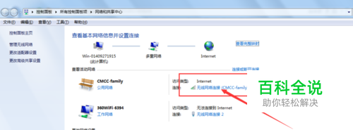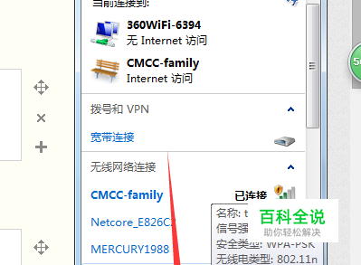 首先要确定你的电脑能连接上CMCC,这里小编连接的是CMCC-family,如图所示