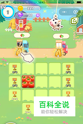 使用左下角的手,滑动到番茄上,就可以收获了。产出的数量和番茄本身的数量相同的,因此,尽可能合成更高等级的番茄,同样的时间里就可以收获更多了。