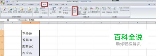 如图,文字和数字在一个单元格内,现在要拆开分成两列,可用分列方法实现:先选中数据所在区域,在菜单栏选择数据--分列。