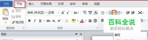 单击“开始”选项卡上“段落”组中“编号”按钮右侧的三角按钮。