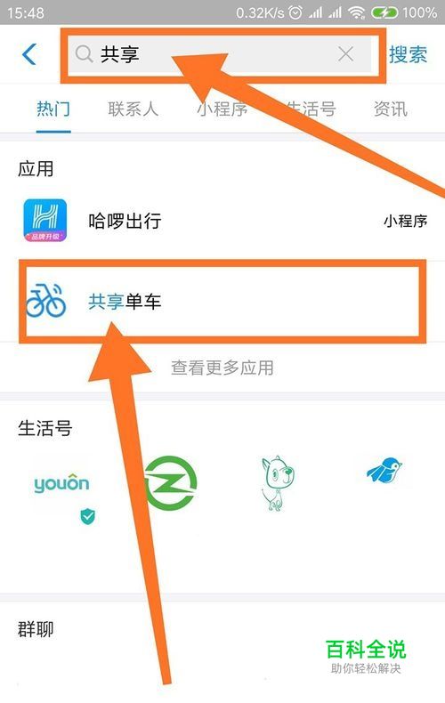 要是没有就在更多里找,也可以在顶上的搜索栏输出共享,就出现了,点击进入。