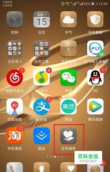 第一步在我们的手机中找到自带的会员服务,点击进去,如下图所示:
