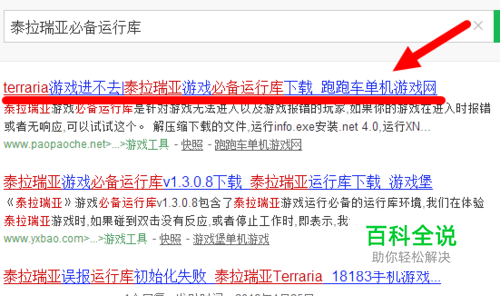 在浏览器上输入“泰拉瑞亚必备软件库”,在弹出的界面选择一个进去