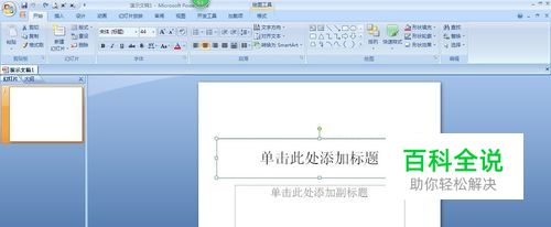 首先,打开PPT。点击图中两个方框,删除delete。白色画面不够大的话,按住Ctrl,中指将鼠标滑动轮向前滑动,放大画面。