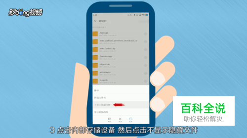 点击“内部存储设备”,点击“不显示隐藏文件”,选择“MIUI”,点击“显示隐藏文件”。