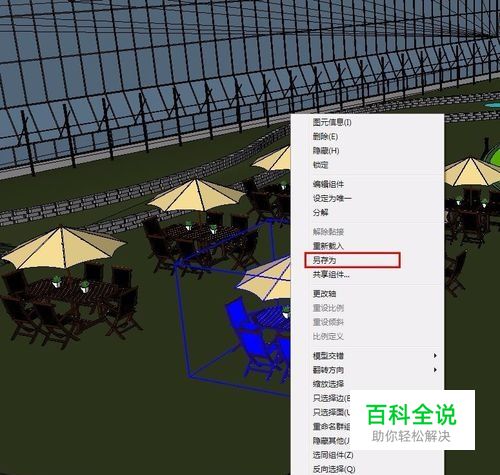方法06点击任何组块,右键另存模型,桌面就会单独导出你这个组的文件。在可以单独编辑这个组里的模型,编辑好后在重新载入,将在原位置重新替换原有组里的模型。(高级)