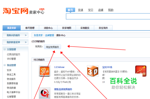 第一步:您得先开能淘宝视频服务,这个在你的卖家中心>店铺管理>媒体中心目录树中找到淘宝视频服务,并开通最低服务项目,大约5元2条视频/月。这个是最基本的开通,因为不开通淘宝视频服务,您是无法上传视频文件的!