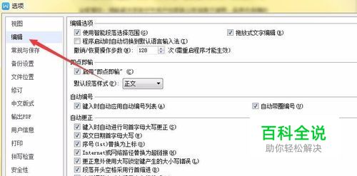 在 wps选项----编辑里边,同时这个设置在WPS文字,演示、表格里边都是通用的。