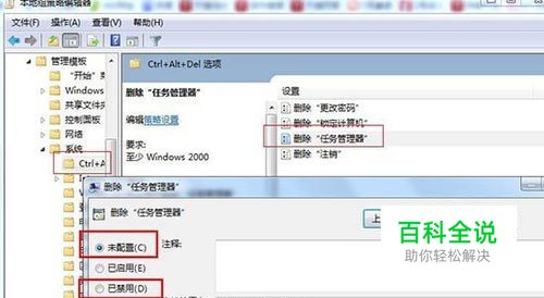打开后在该列表中双击打开 “删除任务管理器” ——设置——选择”已禁用“或是”未配置“。