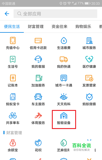 第二步进去全部应用界面之后,下滑在便民生活中找到智能设备,如下图所示: