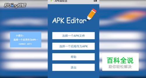 打开APK编辑器,点击“选择一个应用作为APK”。