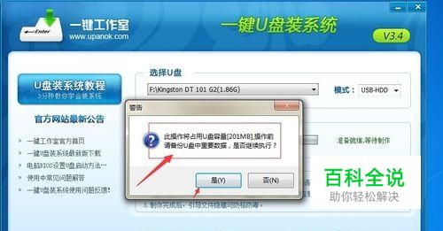 中途会提示你,此操作会占用U盘的空间,最好是对U盘里面的资料进行备份,如果是空U盘,或者没有主要的资料就直接点击是,进行安装,或者就把U盘的资料备个份吧