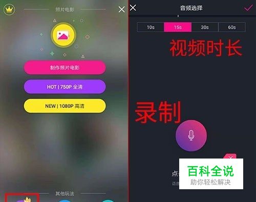 点击文字视频进入制作页面,先设置好上方的时间,避免一些人只能发15s,做太长的话传不上去。点击中间圆圈直接录制文字稿,点击下方导入视频或者音频,。点右上角对勾,系统会智能识别音频,生成文字视频。