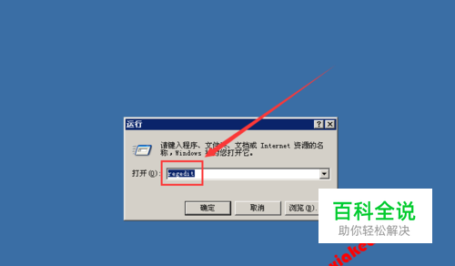 点击电脑桌面左下角的“开始”菜单,在“开始菜单”中找到“运行”菜单项并且单击,在运行的对话框中输入“ regedit”(中文意思为注册表),然后点“确定”按钮。如下图所示: 小提示:用键盘上的组合键“开始”键+“R”键,也可以调出运行对话框。
