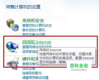 点击[开始]--[控制面板]打开后找到[网络和internet]