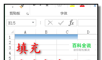 小编以简单的例子演示操作方法。 比如,要把A1:C1,这三个单元格填充成蓝色渐变的效果。