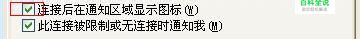 问题:“连接后在通知区域显示图标”没有勾选。这也是做多出现的问题, 不经意间去掉了此选项前面的对勾。如下图所示: