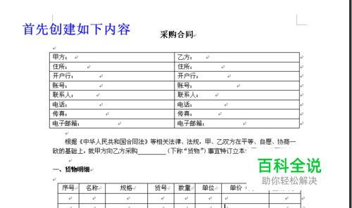 打开WORD,创建如下内容