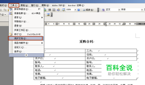 锁定WORD文档指定的文字表格来制定固定模式合同
